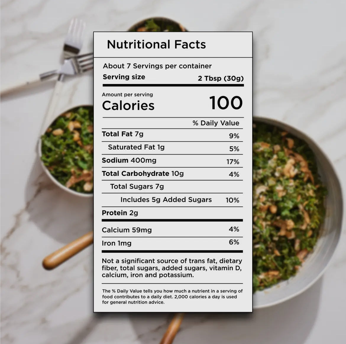 - Ingredients: Coconut Aminos (Coconut Blossom Nectar, Sea Salt, Water), Sesame Paste, Pineapple Juice Concentrate, Toasted Sesame Oil, Distilled White Vinegar, Lemon Juice Concentrate, Rice Vinegar, Ginger, Garlic Powder, Cayenne Pepper