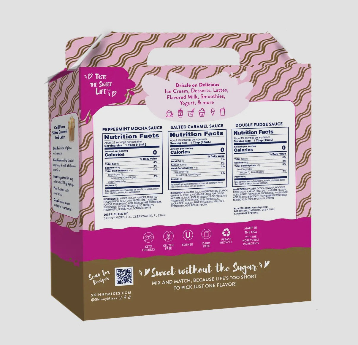 Unwrap the sweetest part of the season with our Seasonal Sauce Trio! So Peppermint Mocha, Salted Caramel, and Double Fudge bring festive flavor to every sip and drizzle. With zero sugar and zero calories, you can top lattes, swirl over desserts, and add holiday cheer to every treat, all guilt-free.
